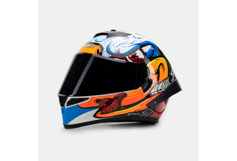 Аэродинамический спойлер улучшает стабильность на высоких скоростях, позволяя сэкономить драгоценные секунды на треке или получить максимум удовольствия от быстрой поездки. Выгнутый подбородок обеспечивает расширенный обзор даже в спортивной посадке, делая управление комфортным и безопасным. Встроенный солнцезащитный визор защитит глаза от яркого солнца.